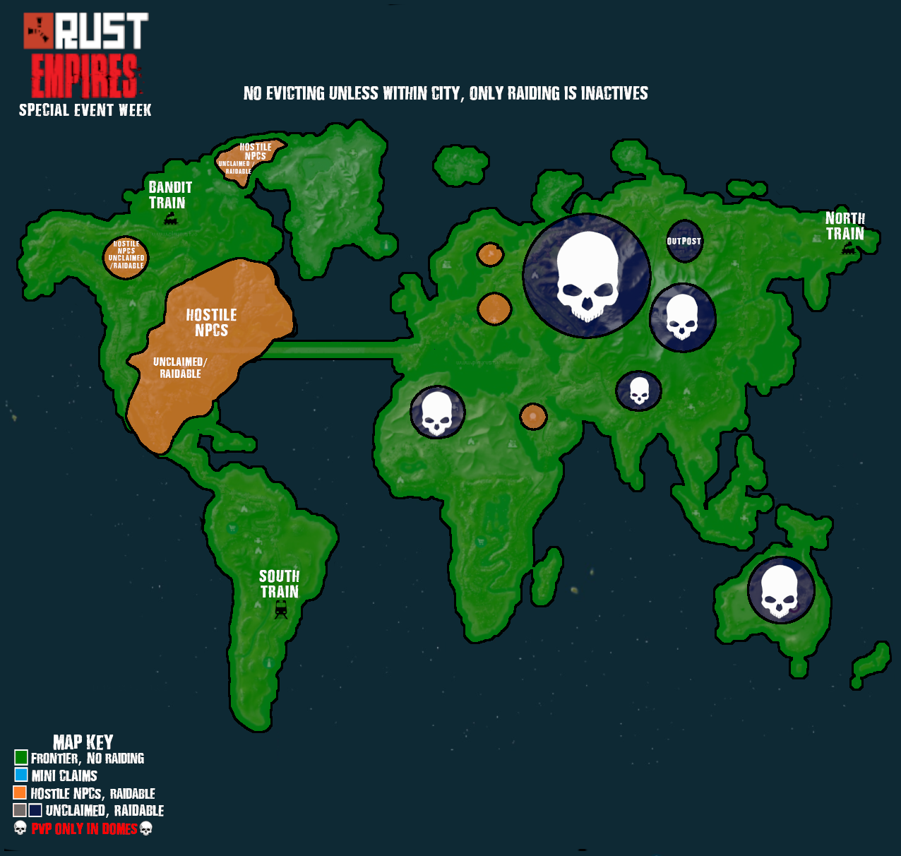 A unique Rust experience where strategy, diplomacy, and warfare shape the world. Build powerful factions, claim territory, and carve out your empire in a server where survival is only the beginning.